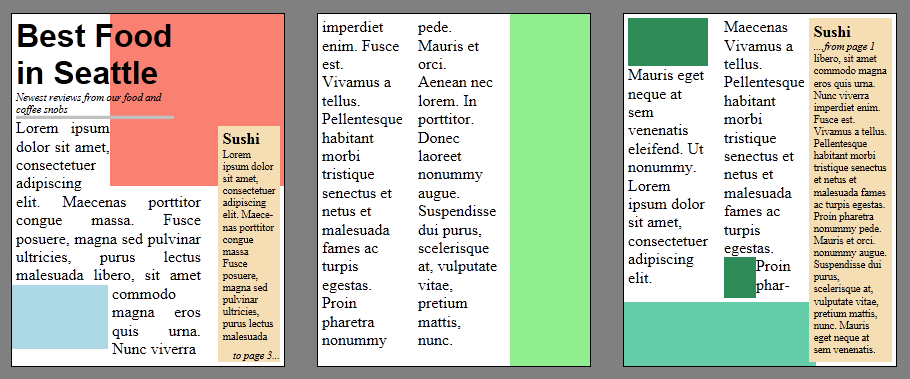 See also Fragments, Columns, Regions, Pages, CSS Region Templates
