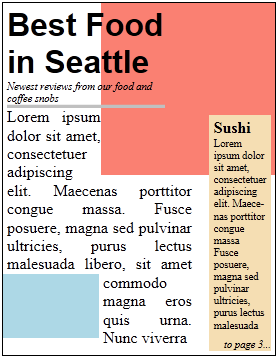 Goal: enable complex page design with multiple content flows and graphics, approaching or exceeding capabilities of print design
