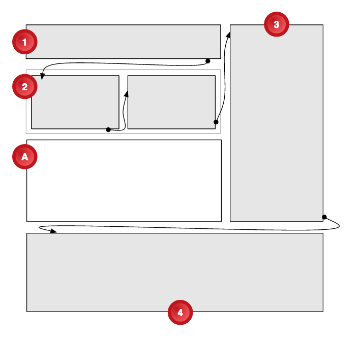 The designer’s intent is to position an image in box A and to flow an article’s content from box 1 through boxes 2, 3 and 4. Note that the second box should have two columns, and the image is not contained in the article. Box 4 should auto-size to render the remainder of the article content that did not fit in the earlier boxes.
