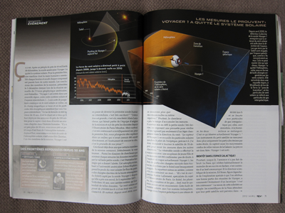 Here the layout uses the two-page spread to hold large graphics. Consider how something like this could look on a wide screen, with the placement of the text columns depending on the size and shape of the graphic elements. This particular arrangement could be generated with two regions (the second with multicol properties set).
