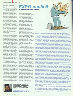 This layout has two linked flows, one in German and one in English. The first page has different column settings for each flow, but the following page(s) have similar column characteristics (though twined together in an interesting way). This could be done with page templates that define one layout for the first page, then fall back to a repeating page template to contain the remainder of the articles.