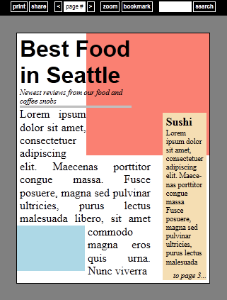 Goal: enable complex page design with multiple content flows and graphics, approaching or exceeding capabilities of print design
